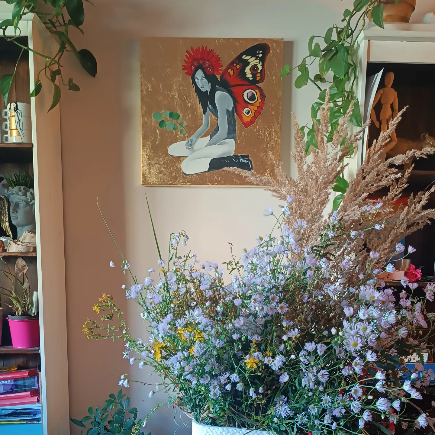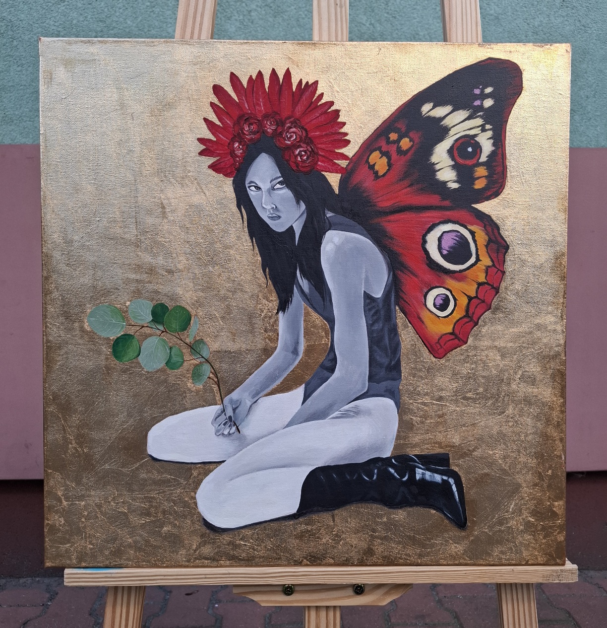 Goddes of Abundance, 2024, akryl, szlagmetal, rozmiar: 50×50 cm